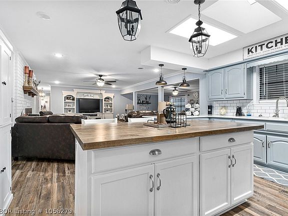 Formal living, dining, den, along with sun room, and enclosed patio. Garage converted to game room window ac and space heat used. Nice level land with 3 separately fenced in areas. Nice detached workshop and a play house. Breakfast bar, large fireplace and more. Lots of house for the money.