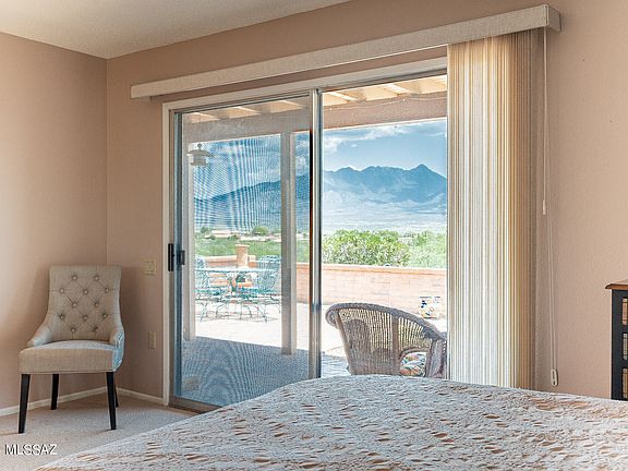 Sitting on a cul de sac overlooking the Santa Rita Mountains, this premium lot will command your attention from the moment you arrive! Backing up to the desert, this end unit features unparalleled views of the Santa Rita mountains with no rooftops or homes behind you to interfere in the spectacular beauty! An arched entry leads to the charming front courtyard Step inside to the wide open living room where sliders invite the mountain views inside! A magnificent beehive fireplace anchors and warms the room. A dining area is adjacent and is large enough for family and friends to gather and celebrate while enjoying the views and fire. The spacious kitchen features windows looking out to the mountains and also the front courtyard, bringing in the views and natural light. Step out to the patio where the wide open desert and blue skys are the only thing surrounding you while you gaze at those breath taking mountains! The master bedroom is spacious and features dual vanities and a walk-in, tiled shower. If views and privacy are at the top of your list, you have found the perfect home!
