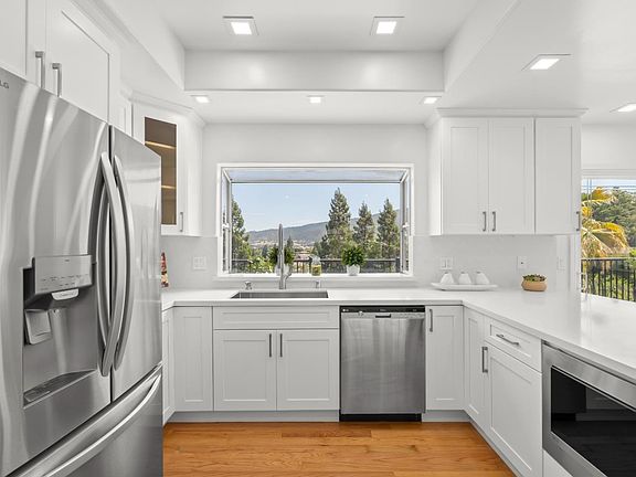 Welcome to this private, gated city-light-view estate. New remodel finished! Wow factor! Spacious 4,000 sq. ft. located in the vibrant West Side. Custom built home on a premier gated subdivision "Live Above The Valley Floor." Located close-in within blocks of all West side amenities. Private, gated, audio-video equipped access. No HOA fees. Featuring five bedrooms, including a primary suite with a retreat, walk-in closet, private view decking, and ground floor convenience. The kitchen is a chef's dream, equipped with new shaker designed cabinets, a gas cooktop, quartz countertops, built-in oven, and modern GE Profile appliances like a new frig-freezer, 1/2 HP disposal. Enjoy meals in the formal dining roomand breakfast nook. The home features high ceilings, radiant flooring, and a combination of Italian tile and wood flooring. Relax by the fireplace in the separate family room, or enjoy the seamless kitchen/family room combo. Laundry is a breeze with facilities on the main floor utility room. Located within the Gilroy Unified Elementary School District, this property is ideal for families. Additional amenities include a security gate, skylights, vaulted ceilings, and a three-car garage. Don't miss this opportunity to own a home with both comfort and style in Gilroy.