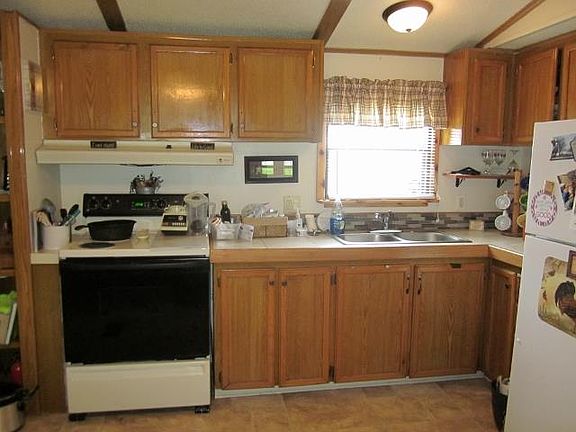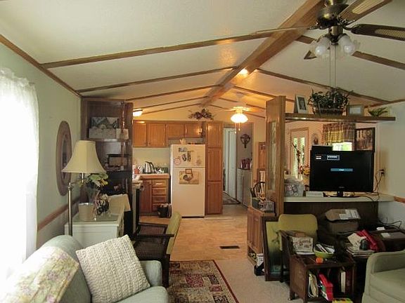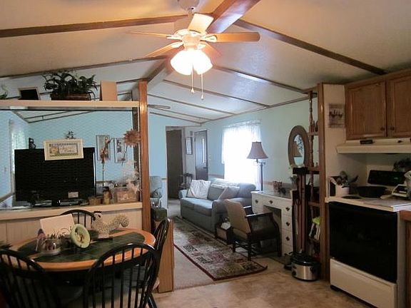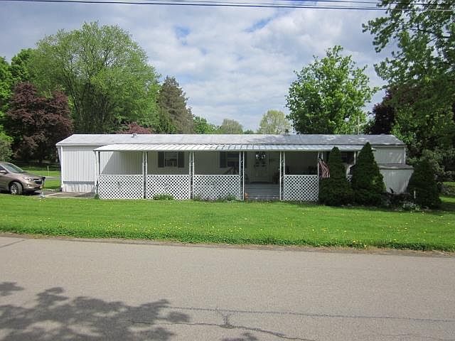 NICE 14 x 70 Mobile Home in 55+ Park. First unit off Porter Street entrance offers large front yard! Park rent is currently $290 and includes taxes, water, trash removal, lawn mowing & snow removal from driveway. Home has open kitchen./living room, two large bedrooms, two full baths & laundry area. Updated floor covering, water lines, hot water heater, counters in kitchen & master bath & new toilet & sink in master bath. Master has 3 closets. All appliances convey including washer & dryer. Carport & deck. Taxes, assessed value & age of mobile all estimated. Furnished an option.