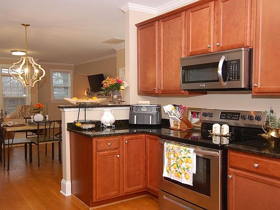 Awesome location!! Close to downtown, Glenwood South & Seaboard Station with all the entertainment & restaurants; yet nestled in a walking friendly neighborhood. This end unit townhome with its welcoming front porch offers hardwood floors on 1st fl, granite countertops, SS appliances, plantation blinds, and gas fireplace. Washer/Dryer included. Private courtyard is great for outside entertaining. Each bedroom has an en-suite bath & walk in closet. Two assigned parking spaces.