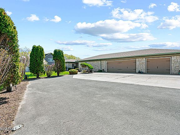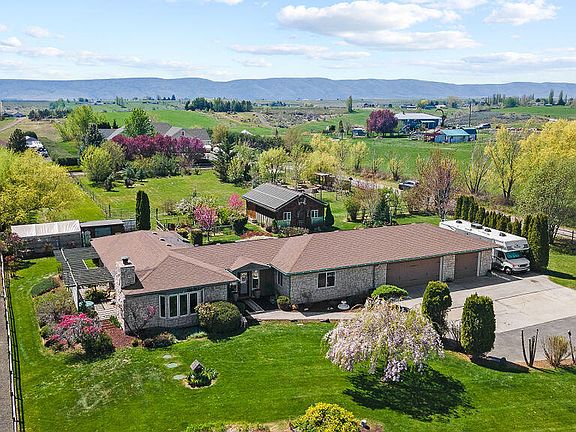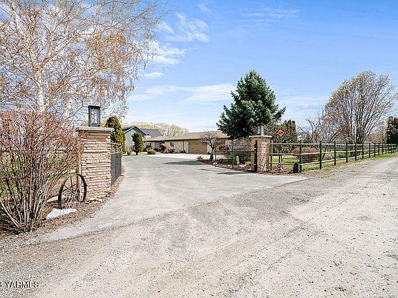 Your well-kept West Valley country setting awaits you with 1,721 square feet in this 1998-built home which sits on almost two acres of irrigated land with territorial views, all of which must be seen in person to fully appreciate. Driving up to the home, you will observe a fully fenced property with a privately gated and paved driveway. Begin your walk up to the front entry and continue inside to observe a bright and extremely well-maintained home featuring LED lighting, three bedrooms including a living room which is complete with a cozy wood burning fireplace, and the primary suite with a walk-in closet, dual vanity, and 3/4 bathroom with a skylight.You will see beautiful tile floors in the open kitchen nearby with granite countertops also, and as you continue your tour to the living room, you can step outside to a patio area where you can keep strolling around the property itself to see the park like setting and your array of fruit trees and a slight view of Mount Adams. Additional features include the home being entirely on one level, laundry area, a storage shed and multiple storage areas, dog run/kennel area, RV parking with an RV hookup/dump, a multi-purpose outbuilding/studio/shop, sprinkler system, solar panels, hardwired security system, whole house attic fan, heat pump hot water heater, mini-starter greenhouse, a spacious three-bay garage with loads of built in storage with the third bay heated, and so much more!Please see attached in bloom updated May photographs and video for property as well!Third bedroom may be non-conforming because it wasn't included on the original septic permit.