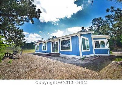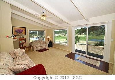Idyllic, pastoral setting on 4.8 acres with two ponds, one spring fed, described by it's owner as a "slice of heaven." Open floor plan with lovely views out of every window. Upgrades include: New windows in 2010, 2011: new electrical which replaced all outlets, ceiling fans, lights, hot water heater, remodelled kitchen with all new appliances, flooring & granite countertops, furnace 2007, new 50year Malarky roof in 2008, tar & gravel 2007. Nestled in Pleasant View Estates, D-20 schools, just 4 miles from USAFA's north gate. View of Pikes Peak, quiet neighborhood, wildlife galore & 1/2 mile walk to beautiful Fox Run Park with hiking, biking & horse trails.