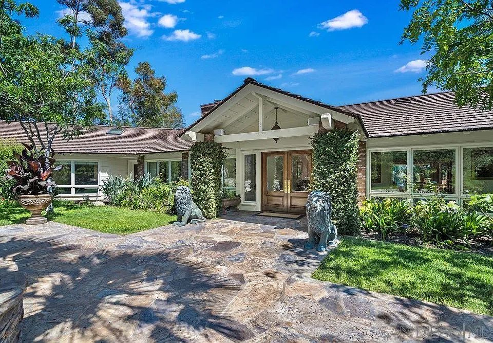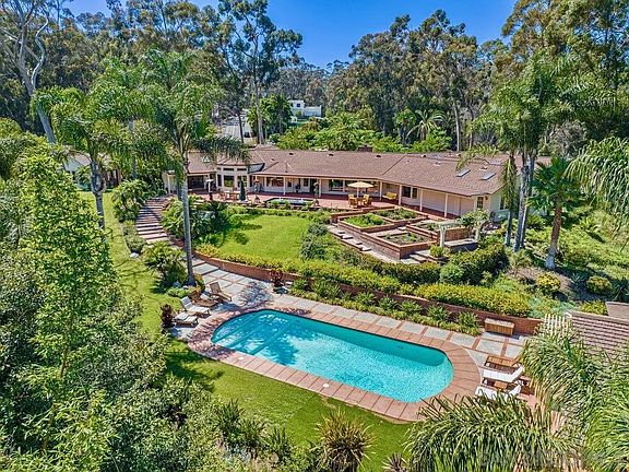 Nestled within the Covenant of Rancho Santa Fe, this extraordinary single-level estate redefines luxury living on an impressive scale. Spread across over 6 acres of meticulously manicured grounds on the coveted westside. Passing through the grand gates that guard the entrance, you'll find yourself on an oversized driveway that leads to the epitome of refined living. The main house boasts 5 generously appointed bedrooms, each thoughtfully designed to provide both privacy and elegance. The open-concept layout effortlessly blends living spaces, creating a seamless flow that is ideal for both grand entertaining and intimate gatherings. Panoramic vistas of the surrounding landscape serve as an ever-changing backdrop, inviting the outdoors in and adding an air of enchantment to every room. Complementing the main residence is a charming guest house. Complete with a well-appointed kitchen, 2 bedrooms, and 2 full baths. A cozy sitting area completes the guest house. The estate's allure is heightened by its private and serene setting, creating a haven of tranquility. An inviting pool graces the grounds below, bordered by lush landscaping that creates a secluded oasis for relaxation and recreation. Adjacent to the pool, a pool house stands, boasting its own kitchen, a full bath, and a bedroom that presently doubles as a captivating game room. The possibilities are as limitless as your imagination, beckoning you to curate the ultimate entertainment experience. Opportunity awaits at every corner of this exquisite estate.