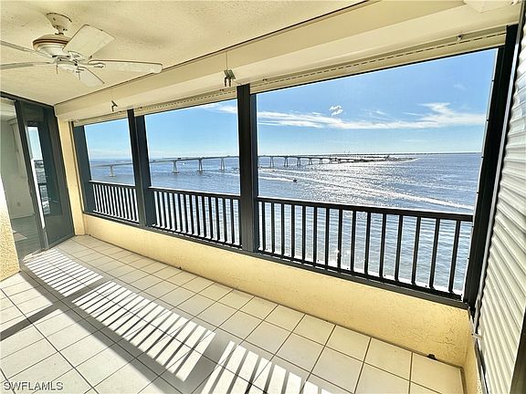 ENJOY BREATHTAKING PICTURESQUE VIEWS from your private spacious balcony! A historic location dating back to 1513 when Ponce De Leon first came ashore at Punta Rassa. Its rich history & scenic waterfront bay views will forever make Punta Rassa a desirable SWFL GEM! Building comps include two sales in 2021 (prior to Ian) - similar views - sold for $473,000 & $527,500. This 2 BR / 2 BA condo only had very minor damage from Ian. SELLER PAYING $45K ASSESSMENT. Elevators are only steps away. IMPACT WINDOWS. ROLL DOWN STORM SHUTTERS on balcony. Waterfront bay views, Sanibel Causeway, & barrier islands can be seen from the master bedroom, living room, & balcony. Condo building & property sustained damage from Ian & are currently being renovated. Amenities will include a community pool, hot tub, tennis courts, shuffleboard, playground, gazebo, gas grills, & restrooms. For BOATERS, Sanibel Harbour Yacht Club is adjacent to the property offering boat slips for purchase & social membership at no extra fee. Private fishing dock with pier license & 2 docks. NEW ROOF 2023. Rentals: 30 day min/ 1 yr max. $1,965 qtrly condo fee. AGENTS: See Confidential Info & supplements. CASH ONLY - SOLD AS IS