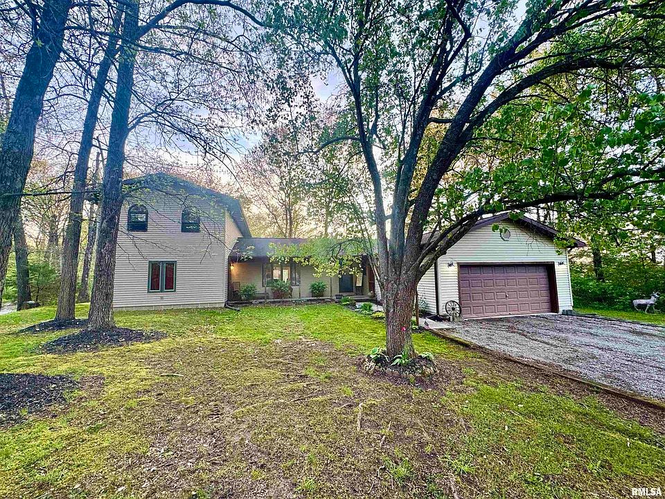 Welcome to your own private retreat! Nestled on 2 beautifully secluded acres with mature trees and thoughtful landscaping, this 4-bedroom, 3-full bath home offers both comfort and functionality. The spacious open floor plan features a welcoming great room that flows easily into the kitchen and dining area, perfect for gathering with family and friends. Upstairs, you'll find a versatile bonus room or second family room complete with a full bath, ideal for guests, a game room, or a cozy movie night space. Step outside to enjoy the peaceful setting from the covered front porch or relax on the back deck overlooking the above-ground pool. The property includes a 36x50 pole barn, a 2-car attached garage and an additional single-car attached garage. A shed sits near a large open area that would make an excellent garden spot or hobby farm, with water access already in place. Located just minutes from Rend Lake, you'll have easy access to a wealth of recreational activities including boating, fishing, hiking, biking, golfing, hunting, camping and scenic trails. If your looking for space, privacy, and a place to make lasting memories, this home checks all the boxes. Schedule your private showing today!