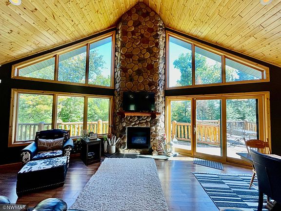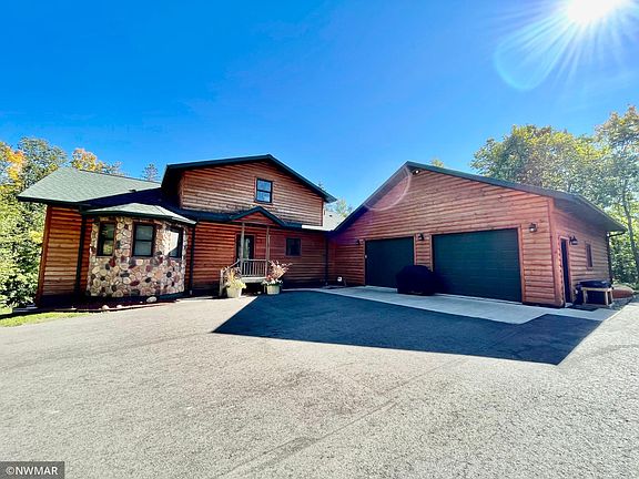 Big Turtle Lake, this custom home is move in ready with 5 bedroom and 3 baths. The lovely home boasts a spacious loft, a gorgeous rock fireplace in the living room and another in the family room. Enjoy the fun entertainment area, with a walk out basement which leads to a nice patio and fire pit. The home has been updated with carpeting, paint, new gutters with downspouts, new water pressure tank and new clothes dryer. There are 2 bedrooms on the main level, including laundry. Lower level has 3 bedrooms & full bath. Plenty of room for your outside toys in the 28x28 attached double garage. The waterfront is across the road on two parcels adjacent to the public access. This sale includes 3 parcels. You will have privacy and access to Turtle Lake, everything you need to enjoy the great outdoors in Northern Minnesota. Call for your private tour!