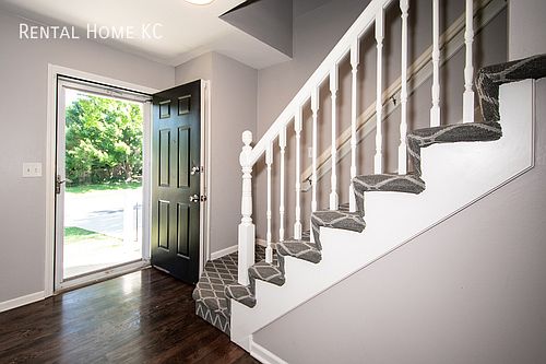 This updated 2-story has all the features most families ask for. The main floor includes a nice-sized living room with auto-ignite stacked granite fireplace, formal dining, U-shape kitchen with eating space, half bath, and laundry. The entire mainlevel has beautiful real hardwood floors, refinished trim, wall, and ceilings, and new lighting. The kitchen features completely repainted cabinets inside and out, granite countertops, subway tile backsplash, and stainless steel appliances, including refrigerator. Upstairs you will find the main bedroom suite with vaulted ceiling, 2 closets and private bath with double vanity, hall bath, and2 more standard size bedrooms, plus one oversize with built-in bookshelves. All four bedrooms have ceiling fans. Upper level also has updated paint on walls and trim and cabinets. A large fully finished rec room with stain-resistant carpet located in the basement provides an excellent second living space - but leaves lots of storage, with shelving. The shady back yard is fenced and includesanenormousdeck. This home is located within walking distance of the many shops, services,and restaurants at 119th and Blackbob and isless than amile from I-35. If you are viewing this listing on a 3rd party website, please confirm property details and renter qualifications at rentalhomekc.com SHOWING STATUS: OCCUPIED Rental application required prior to showings AVAILABLE: Early May LEASE TERM: One or more years, ending in June TENANTS: No more than 2 non-related adults PETS: Small pet considered depending on breed and age BASEMENT: Finished FENCED YARD: Yes LAWN SERVICE: Not provided ROOMS: Living room..............18 x 15 main level Dining room.............12 x 10main level Kitchen.....................16 x 12 main level Main bedroom.........15 x 14 upper level Bedroom 2...............11 x 10 upper level Bedroom 3...............11 x 10 upper level Bedroom 4...............20 x 12upper level Family room............26 x 20 lower level Application Fee: $40/adult Non-refundable
