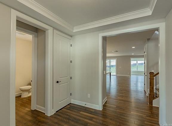 Masterfully designed master down plan with gourmet kitchen that includes upgraded cabinets and stainless steel appliances. The spacious great room has a stone fireplace and opens to a sunroom and covered back porch. Upstairs, you will find 3 bedrooms, a loft and 2 full bathrooms. The largest upstairs bedroom/bath combo can also be used as a second master! 8' doors with 9' ceilings throughout plus 5" wide hardwood planks downstairs to complete this home! Please see sales associates for clarification on roads.