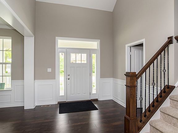 Amazing Greek Revival Mayfield flrpln! Lrg Mstr Ste & Ldry on main w/2 prvte BR upstairs. Master Bath w/ ceramic tile & huge walk-in shower. 2-story GreatRm & Foyer. Gas log Fireplace. Gourmet Kitch w/ SS applcs. Lrg island overlooking GreatRm. Quartz counters. Upgrade hard surface flooring on main lvl. Sunroom w/ built-ins. Basement has 9ft ceiling & plumbing rough-in. 12x12 patio + 3car garage. Walk to parks & shopping. Located in Noblesville's premier Lochaven n'hood. Home ready in May!
