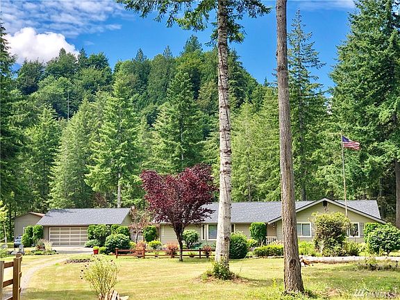 Remarkable Creek Front Home w Acreage! Wonderfully cared for by loving owners for 30 yrs. Located on Cloquallum Creek, this 3 bed 2 1/4 bath home boasts vaulted ceilings,wood fireplace,walk-in pantry,lrg kitchen,low cabinets,din rm, real wood windows & master suite w walk-in closet. Beautifully landscaped all the way to the creek on 5 acres w gated entry,fruit trees,garden space,covered patio,above ground pool, detached 2 car garage + separate RV shop w carport. NEW ROOF this month. Call Today!