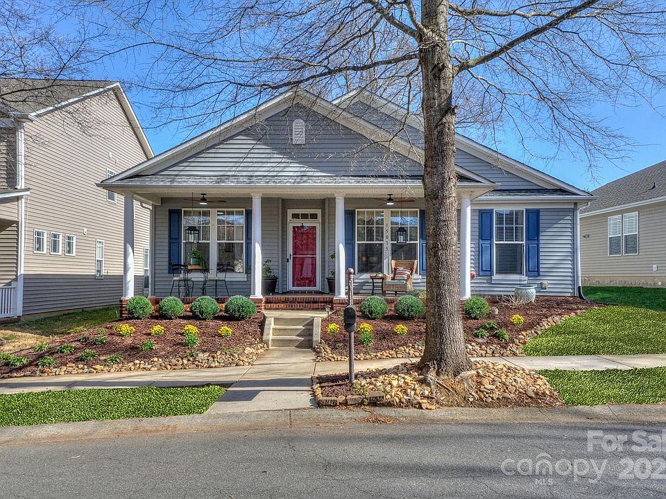 Discover this charming cottage-style home with rocking chair front porch & spectacular screened in patio, nestled along a picturesque tree-lined street. Tastefully designed open floorplan w/ primary bedroom suite located on main level accompanied by 2 well-appointed bedrooms & versatile sitting room that can easily serve as a formal dining area w/ custom built-in closet Safe. Upstairs enjoy a private 4th bedroom/bonus room suite with full bath, no closet. Beautiful new panoramic sliding glass doors, opening to a screened-in patio w/ soaring vaulted ceilings, custom electric fireplace & stunning wood surround. This patio is the true gem of the home, complete with an additional heater to ensure year-round entertaining. Residence enjoy exceptional amenities in the MacAulay Community; Clubhouse activities, pool w/ slide, splash play area, pocket parks, tennis courts, walking trails, etc. Only .25 miles to Grand Oak, 2 miles to Birkdale Village, Lake Norman & I77 & Uptown Charlotte.