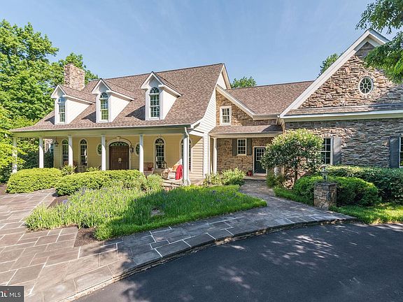 Presiding over 21-supremely private acres and surrounded by Forest Conservation, this distinctive luxury home is designed with enduring vision for resort-styled living right at home. A private entry drive opens to a sweeping circular drive, bluestone walks sided by gardens of iris blooms that set the stage for extraordinary outdoor living and entertaining. Professional landscaping is thoughtfully designed to delight and to enhance all four seasons. Inside, a grand two-story foyer and cascading stairs are flanked by living and dining formals, arched openings, and richly finished hardwood floors that draw you into a dual entry two-story great room. A deeply coffered ceiling is anchored by a wall of custom windows, streaming ever-changing light, and a soaring stone fireplace. Graciously sized informal rooms unfold seamlessly in this floor plan offering a central eat-in cook's kitchen, informal family room, and Butler's bar. Adjacent to the kitchen is a light-filled breakfast room and screened porch offering choices for everyday dining venues. The central kitchen also offers adjacencies to the laundry room, secondary entry, arrival center, and back second stair. Main level living is completed with a separate and equally embellished wing and owner's bedroom suite. Impressive designer finishes and details include strong moldings, cove-lit ceiling, fireplace sitting area, and private atrium door for stargazing on the rear deck. Two walk-in closets, and a pair of stately double doors open to a spa-like luxury bath offering a jetted tub, separate vanities, and a walk-in shower. Imagine living life surrounded by magical gardens, a glistening saltwater pool, and a separately heated in-ground spa, offering perfected relaxation and a private place to decompress. With a bit more up-tempo, gatherings large and small will enjoy amenities including a dining patio, outdoor kitchen and stone bar bump-up. Swimmers will enjoy a full bath in the detached garage and another full bath in the walk-out lower level. Indoor activities will rival the amenities outside with a wet bar, billiards area, theater and exercise room. This well-appointed, well-maintained residence and resort-like compound offers something for everyone of every age. Come home and enjoy unforgettable amenities and unparalleled options for living, working, and playing at home!