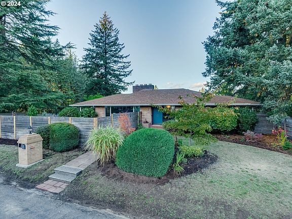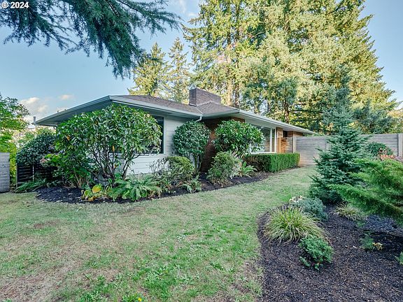 Discover this spacious Mid-Century Modern daylight ranch, ideally situated across from the tranquil Glendoveer Golf Course. The neighborhood boasts an array of MCM homes, each on oversized lots, creating a charming and open feel. Set on nearly half an acre of private, fully fenced, wooded grounds, this property offers so many options! With the city encouraging in-fill, you may be able to divide, build an ADU or Plexes, park a tiny house, build a she-shed...so many possibilities! Just be sure to check with the city for approved options. Inside, you'll find the home’s original architectural charm thoughtfully preserved, with features like rich wood paneling, indoor planters, three brick fireplaces, parquet flooring in the entryway, and vintage tile in both the kitchen and bathrooms. Enjoy stunning sunset and mountain views out the north window in the family room. The current owners have carefully integrated modern updates while maintaining the home's classic style.The main level includes two bedrooms, a formal living and dining room, plus a family room that opens to a deck overlooking the backyard. The kitchen offers space for casual dining and includes a built-in desk, perfect for multitasking. Downstairs, you'll find two additional bedrooms and a bonus room, previously used as a creative hobby space. Out front is planted an edible garden with strawberry, kiwi, pomegranate, and blueberry. Don't miss the established Japanese Maple garden as well! This home blends the best of classic Mid-Century design with modern comfort, offering a unique opportunity in a peaceful, green setting.
