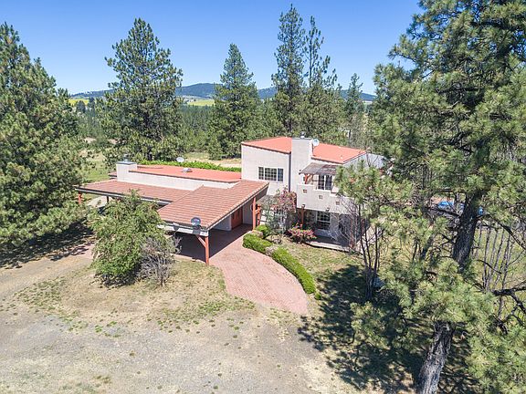 29.7 remarkable acres-big pond w/island-"dock"-bridge-great bird watching-heron etc. & wildlife. Producing walnut & fruit trees & grape arbor. Cabin/studio, barn/shop/RV bldg. Special-southwest flair cstm. hm. Radiant floor heat, lg chefs kitchen w/Wolf prof range. Dazzling master suite w/his & hers bths, deep soaking tub + jet tub. Up level fam/rec rm-or bdrm (s) w/bowling alley wood floor & great deck to enjoy stunning views. Huge grg. Close-Spokane&Coeur d'Alene. Freeman schls. Needs some work-AS IS!