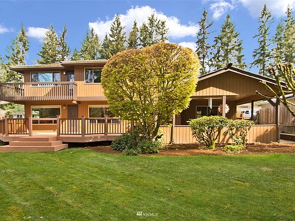 Welcome to a bright, generous Maplewood home on nearly 1/3 acre, loaded with mature landscaping and color-filled beauty through the seasons. The entryway waterfall softly babbles, inviting your guests inside. Built in an era of generously sized rooms, with all of the bedrooms upstairs, plus a den on the main floor. You'll appreciate the: large private primary suite with a sunny balcony, a large kitchen with granite counters, and living and family rooms that both connect to outside giving your parties easy flow to the huge deck and a large skylight lit covered patio. Other features: A/C, tankless hot water, large utility rm, updated windows, updated main floor bath with accessible shower, extra off street pkg, skylights & a raspberry patch.
