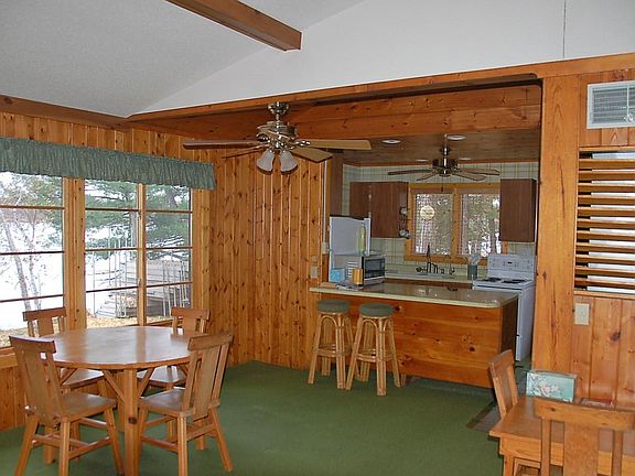 Bay Lake seasonal cabin that was sold before print. Level lot with 100 ft excellent shoreline. Beautiful east facing views. Many original features inside the cabin with newer half log siding and roof. Original construction date of cabin unknown, effective year built 1990 per County records. Garage built 2006 per County records.