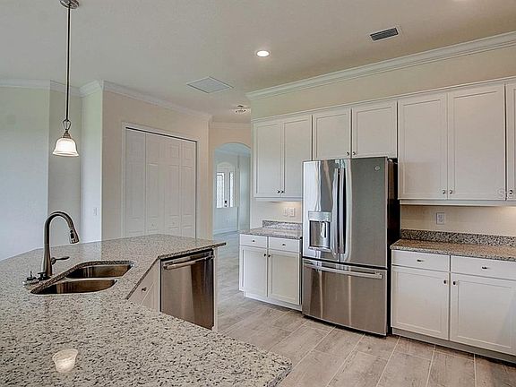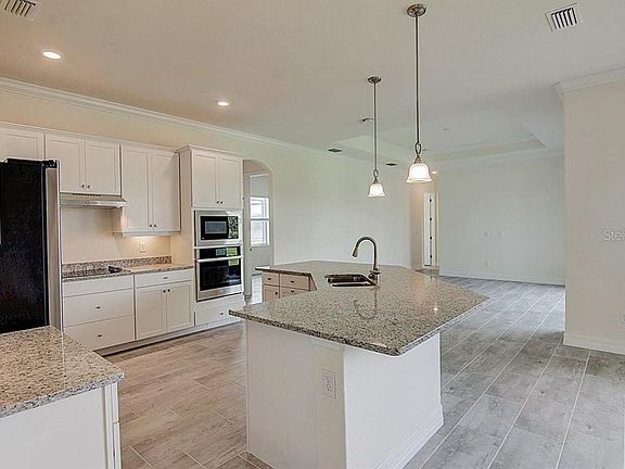 - Interior Features: Eating Space In Kitchen, High Ceiling(s), Master Bedroom Downstairs, Split Bedroom, Stone Counters, Walk-In Closet(s), Crown Molding, Thermostat, Kitchen/Family Room Combo, Tray Ceiling(s)