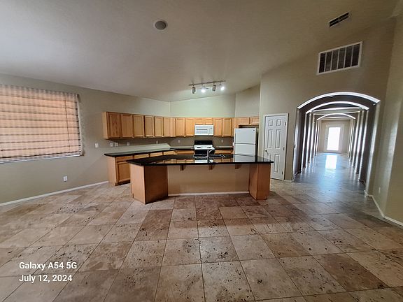 One of Trend Homes more popular floor plans. 3 bedroom with office/study or 4th bedroom. Upgrades Ceramic tile in all the right places with designer tile entry. Granite counters, microwave, washer & dryer. Nice size back yard with covered patio. Such a beautifully customized house ready to be made a home!