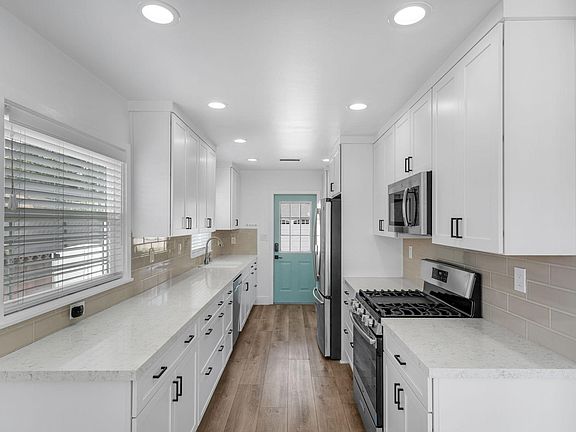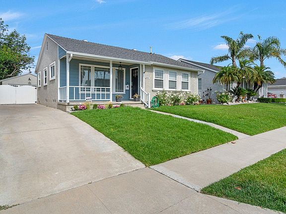 Welcome home to this completely remodeled beautiful home. This home with loads of curb appeal features a front porch. As you walk inside, you'll be greeted by LED recessed lighting and wide plank vinyl flooring throughout the home. Large, picture windows allow plenty of natural light, giving it a bright and airy feel. This home has an open floor plan with great flow, while still having defined areas for dining and living. The stunning kitchen features plenty of white shaker style soft-close cupboards, grey subway tile backsplash, quartz countertops, stainless steel appliances and an adorable, tiled coffee nook. Three bedrooms give you plenty of space for a primary, children's or guest bedroom, and office. Laundry located in a hallway closet and the bathroom has been remodeled in the same clean finishes as the kitchen. There is even an accessible attic with room for storage. The backyard features a real grass lawn and a large patio area perfect for dining Other upgrades done in 2019 include new central air and heating, new plumbing and new electrical wiring and panel. This can't-miss home is located in the friendly neighborhood of Bodger Park; close to shopping, schools, parks, a golf course, El Camino College, and only a 15 minute drive to the beach! Please call direct