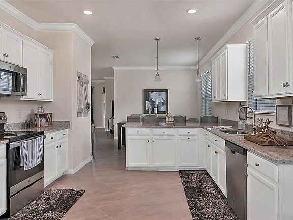 - Interior Features: Eating Space In Kitchen, High Ceiling(s), Master Bedroom Downstairs, Open Floorplan, Split Bedroom, Stone Counters, Walk-In Closet(s), Crown Molding, Thermostat, Kitchen/Family Room Combo, Living Room/Dining Room Combo, Solid Surface Counters