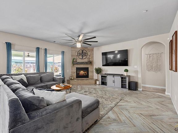 Welcome to your dream home in the highly desirable NW neighborhood of BlackHawk! Prepare to be captivated by the numerous features and upgrades that make this home truly exceptional. This spacious home boasts 2,274sqft & split wing floor plan providing plenty of room for everyone. Step inside, and you'll be greeted by upgraded beautiful flooring that flows throughout the main living areas, creating a seamless and luxurious feel. The kitchen is a dream for entertainers, complete with an upgraded island, stunning granite counters, stylish cabinets and a large dinning area. It seamlessly opens up to the living room, which showcases a gorgeous fireplace, adding a touch of warmth & character.For those with a love for garages, you're in luck! This home offers a 3 car garage with convenient pull-through access to the backyard. The extended patio is an outdoor oasis, ideal for relaxing or hosting during the Bakersfield summer. Don't miss out on the chance to call this BlackHawk Gem your own!