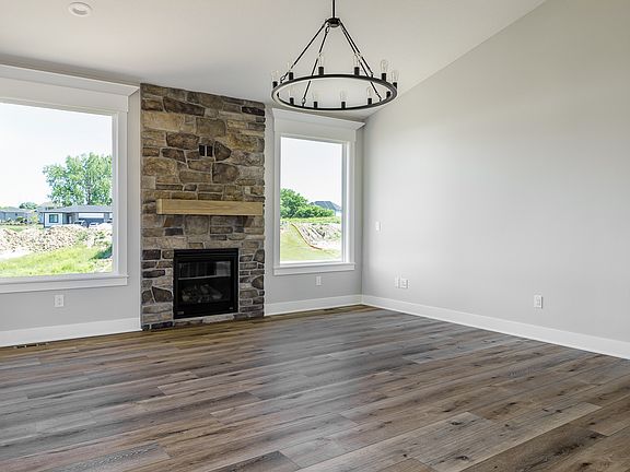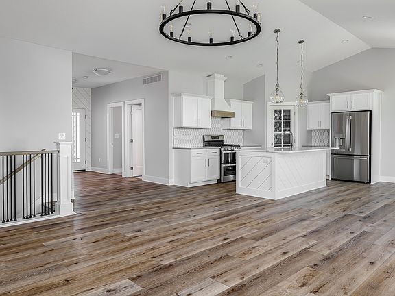 Tanzanite Homes Select Series very popular 2 BDRM Amber Plan with full front porch. This spacious 2 bedrooms, 2 baths has 1540 sf on main floor. Open kitchen with lots of cabinets and counter space plus a corner pantry, shaker style dovetail soft close cabinets with crown molding and stainless-steel appliances. Sun filled eat in kitchen with access to 12 x 12 covered. Very open great room with stunning fireplace. Great drop zone with built in lockers, and laundry. Master bath features double vanities, walk in shower, and walk in closet that passes through to laundry space. The finished daylight LL, features walk up bar, 2 additional bedrooms and large family room. Step outside on the front porch and listen to the birds sing. Full sod, 3 car garage, hardiplank siding, and passive radon mitigation system. No closing costs or origination fee through preferred lender.