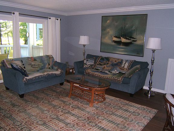 This large 2-bedroom 2-bathroom condo is nicely furnished and includes hardwood and tile flooring throughout with well-done wainscotting on the walls. The living room is expansive with access to the private covered deck. The main bedroom features two queen sized beds with a set of French doors leading to a spacious sitting room that lends entry via a sliding glass door to the private back covered deck that is equipped with two sets of patio furniture for enjoying the outdoors! The second bedroom has a queen bed with its own set of French doors leading to a second sitting room also with private deck access. deck access. Pets will be considered on a case-by-case basis. Fairfield Harbour offers beautiful views of the Neuse River and is just 12 miles from the City of New Bern. It is an active boating community offering amenities everyone can enjoy including an 18-hole golf course, tennis courts, fishing and other outdoor pursuits. Membership to the Broad Creek Recreation Center is available to Residents of Fairfield Harbour and offers an indoor and outdoor pool, sauna, fitness rooms, Wi-Fi and computer access, mini-golf, bike rentals, and more! Professionally managed by Neuse Realty's Property Management Department.