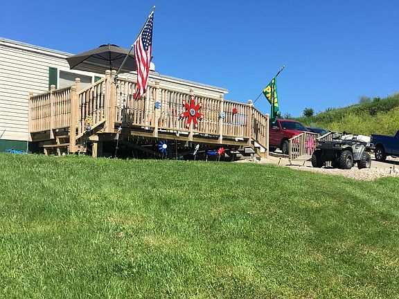 3 bedroom remodeled trailer situated on a 1 acre lot. Central air and propane heat. New countertop and backsplash. Rural water and septic system with a drain field installed in 2008. Driveway is asphalt. Property includes a garage, some furnishings and dock. Very well maintained property!