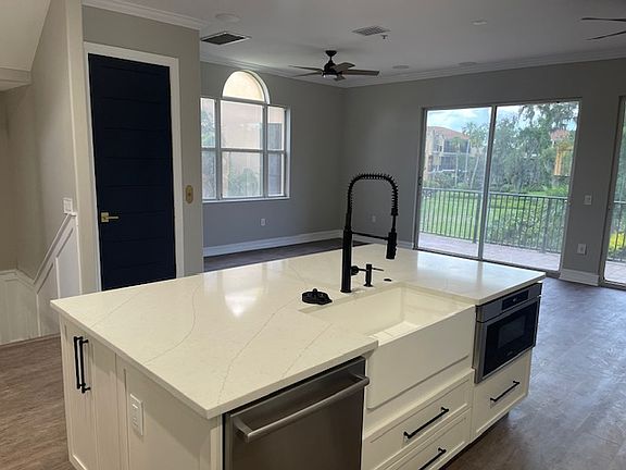 THIS LUXURY TOWNHOME WITH ELEVATOR JUST UNDERWENT A $150,000 RENOVATION! THE KIITCHEN, TWO OF THE BATHROOMS, FLOORING, CROWN MOLDINGS, AND INTERIOR PAINT, MOST LIGHTING AND PLUMBING FIXTURES, AND DOOR HARDWARE ARE ALL NEW. IT SHOWS LIKE A NEW HOME! THE UPGRADES ARE VERY EXTENSIVE. You will not find a more luxurious home at this rental price in all of central Florida. You really have to see it. This home features a hydraulic elevator which services three levels. The staircase in the home features LVP wood treads, white risers, iron railings, sconces and boxed wainscotting. So impressive! There are patio doors and balconies at every level of the home. On levels one and two, they are expansive (full rear wall), providing views to the lush wooded, greenspace, and pond. There is a beautiful community pool right out your back door. The main level has an open floor plan with 10' ceilings and crown moldings. Its kitchen features new floor to ceiling cabinetry with easy close doors and drawers, oversized island with seating, leathered granite countertops to perimeter cabinets with quartz to the island and a Bosch, stainless steel, gourmet appliance package. The main bath features limestone-like porcelain wall tile, new fixtures, and new vanity with quartz countertop. Flooring to this main level is new LVP hardwood. There is a new fireplace and feature wall with custom built doors on this main level. The den / bedroom also has an amazing feature wall. The lower level has an ensuite bedroom arrangement that would just as easily serve as a family room / game room. This level is uniquely separated from the upper two floors and connected only by the home's elevator, making it an ideal in-law arrangement for extended family or a visitor's suite. Again, floor is all new LVP hardwood. Fixtures, hardware and paint are new. The third floor has two ensuite bedrooms, each with sizable walk-in closets. Both bedrooms have feature walls and new ceiling fans. The master bathroom is incredible with a soaker tub and walk in shower. Porcelain tiles to the flooring and wainscotting have a seashell / limestone finish. There is a beautiful dressing vanity and a separate double sink vanity, crown moldings, new fixed glass at the shower and all new fixtures, including a free-standing waterfall style faucet with hand shower to the soaker tub. Heating and air conditioning are zoned with the larger zone entirely replaced. The hot water tank is also new. RESORT-STYLE LIVING IN THE HIGHLY DESIRABLE GATED COMMUNITY OF THE HAMMOCKS AT RIVIERA DUNES. A boater's paradise with an 80-acre deep water marina and protected cove-representing one of the finest waterfront communities in SW Florida that leads directly to the Manatee River, Tampa Bay and out to the Gulf of Mexico. Rental docks are for residents only when available. Or just join the boat club. The oversized two-car garage has plenty of space for storage. Common areas include 2 Pools, Fitness Center, Tennis & Pickle-ball Courts. Internet/Cable and ADT home security are included. Riviera Dunes marina, nature walk, docks, a restaurant and tiki bar on the water are all a part of the wider development. RESORT-STYLE LIVING IN THE HIGHLY DESIRABLE GATED COMMUNITY OF THE HAMMOCKS AT RIVIERA DUNES. A boater's paradise with an 80-acre deep water marina and protected cove-representing one of the finest waterfront communities in SW Florida that leads directly to the Manatee River, Tampa Bay and out to the Gulf of Mexico. This three-bedroom, four full bath luxury townhome boasts high ceilings with crown molding. The ground floor has a huge "bonus" room & full bath and walk-in closet that can be a suite for visiting family/guests or your home office & crafts, or entertainment center. It has double-sliders leading out to a paver patio overlooking your "backyard" with the lush landscaping, nearby pool, and pond + fountain. Take your elevator up to open-plan great-room and kitchen featuring granite countertops, stainless appliances, wood cabinetry, breakfast bar, and closet pantry with an additional room that can be a formal dining room, office/den or a fourth bedroom. The top floor level has the master suite with en-suite bath-dual vanities and sinks, private balcony, walk-in closet, shower, and soak tub. Glass sliding doors on all three levels open to the two balconies and downstairs patio. The oversized two-car garage has plenty of space for storage. The townhome has recently upgraded the air conditioner and refrigerator. Quarterly HOA fees include Insurance (both exterior Hazard and FEMA Flood), 2 Pools, Fitness Center, Tennis & Pickle-ball Courts, Internet/Cable, Exterior Painting, Roofing, Landscaping, ADT Security system monitoring, Fire Sprinklers, Termite bond, Riviera Dunes marina, nature walk, docks, a restaurant and tiki bar on the water. Property Manager, etc.