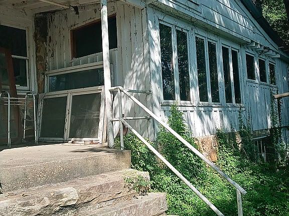 Right on the Chatohoochie River with view and walk down cliffside to put your boat out right on the river. On a cliff overlooking beautiful river views. House needs full rehab including roof, window units heat and ac, the living room has stone fireplace. 400 to 500 square feet of the house need norepairs including a bath, living roomand dining room. The rest needs rehab. Over an acre of land and room to set your boat out on the river. Also a tool shed. Private but main street to house.