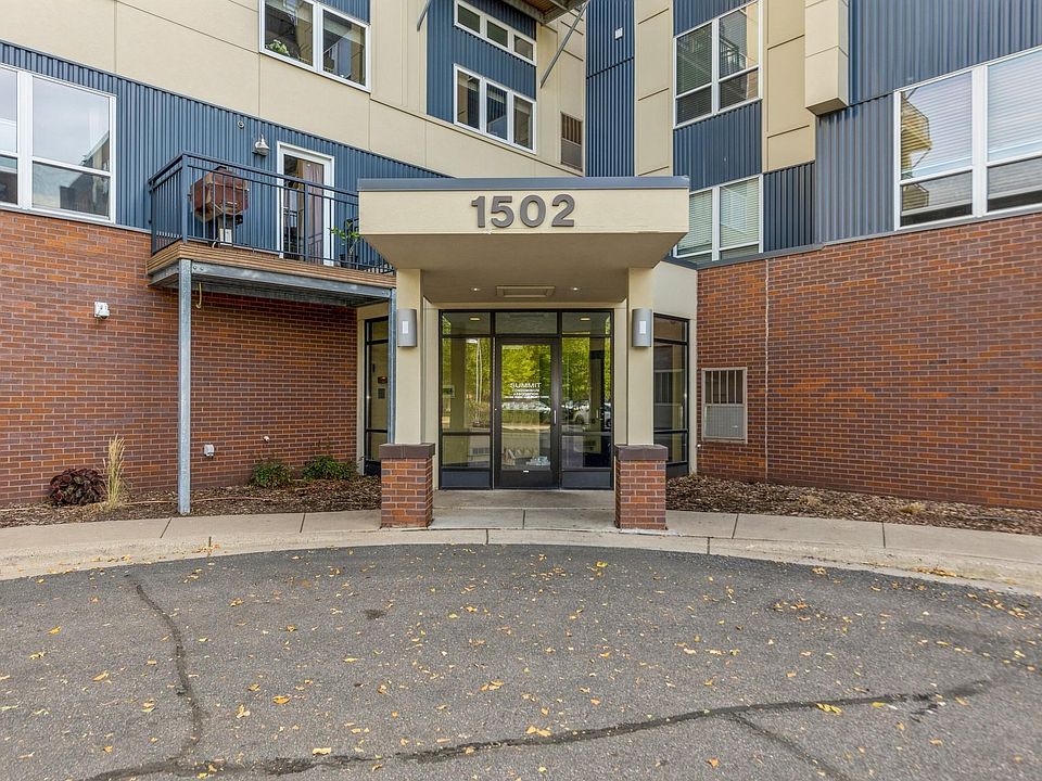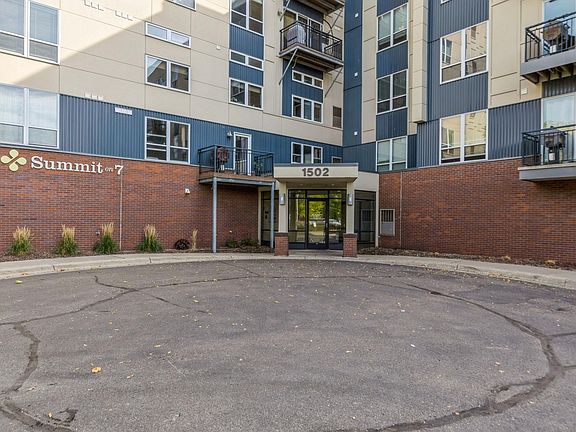 Great opportunity to own 1BR, 1BA condo in high demand Summit on 7 building. The fantastic move-in-ready condo has so much to offer: an open floor plan, a balcony with a built-in grill, a center island, stainless steel appliances, granite counters, cherry cabinets, hardwood floors, and a wide entryway with a coat closet. Spacious bedroom with large closets. Convenient, designated, and heated parking space, a bike rack, and a storage locker. Shared amenities include a community and exercise room on this floor. Excellent location close to shopping, coffee shops, walking trails, and short commute to downtown Minneapolis. Quick closing is possible.