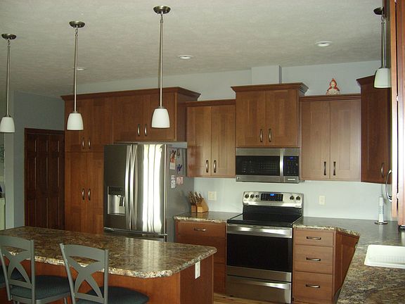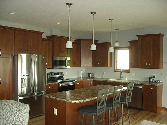Spacious and beautiful best describe this custom built home with a great floor plan. Features include large open great room, hickory flooring throughout great room, cherry kitchen cabinets, large island with electricity main floor laundry, master bath and custom closets. Home is 2 x 6 construction and drain tiled basement with sump pump to avoid any water intrusions. Exterior has a maintenance free covered deck that faces east for shaded evenings that overlooks the local neighborhood. Many more upgrades