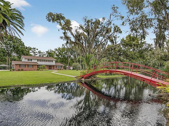 Discover a rare opportunity to own approximately 4.5 acres inside the city limits, complete with a private pond and charming bridge. This remodeled two-story home offers 5 bedrooms, 2.5 bathrooms, and modern updates throughout. The kitchen features granite countertops, while the spacious floor plan includes a gas fireplace, inside laundry with convenient chute, and an epoxy-finished two-car garage. Newer roofs and HVAC systems provide peace of mind. The detached guest suite is ideal for extended family or visitors, offering a full kitchen, bathroom, washer/dryer hook up, and its own one-car carport. Additional highlights include a storage shed, fully fenced property, and golf cart and trailer to convey with a full-price offer. Washer and dryer remain with the home with full price offer as well. This unique property combines country privacy with city convenience—complete with ample parking, fenced grounds, and multiple living options. Truly a must-see estate with character, function, and flexibility.