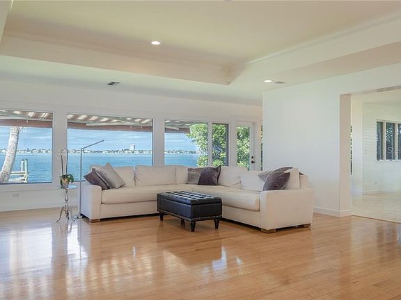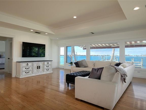Welcome to one of the best locations in Sarasota with astounding unobstructed views, situated on a quarter acre lot on the Sarasota Bay. Experience this one-of-a-kind residence, only a few minutes away from Southside Village and located in the top-rated school system. This home, initially built in 1953, blends Old-Florida simplicity with contemporary luxury and style. Impeccably maintained with a wealth of upgrades, elements of sophistication include custom hardwood flooring, tray ceiling with wood inlays, and a kitchen featuring hand-picked pecky cypress kitchen cabinets and stainless appliances. As you enter the home, a wall of windows frames sweeping water vistas. Wake up in the morning with a full view of the Bay from the large windows in the master bedroom. Your mornings will be extra special as you enter into the large master bathroom that boasts a soaking tub and separate over-sized shower. Hurricane shutters and a brand-new HVAC system provide peace of mind. This home also has a 500 sq. ft. private dock with a 10,000 lb. boat lift which makes it a boater's and fisherman's dream. The outside has been freshly manicured with no obstructions of the 180-degree views of the Bay. Imagine sitting outside watching the dolphins play, the manatees pass by, and the abundance of different birds flying and diving while you sip on your drink of favor, watching the beautiful sunsets. This move-in ready home is truly an oasis poised in a location of unmatched beauty.