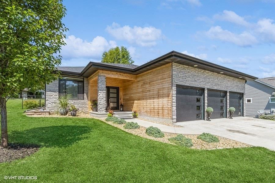 Rare Opportunity to own a Beautiful Prairie Style Modern Home in the desirable Brown Deer neighborhood. Built in 2019, this Energy Star Home exudes Sophistication from the Dry Stacked Stone to the Cedar Wood Accents. Curb Appeal abounds. This Well Thought Out Floor Plan provides a place for everything. The kitchen features Flat Front Cabinetry, a large pantry, upgraded appliances, and tons natural light. The Generous Master Suite includes Two Full Walk In Closets and a Beautiful Spa Inspired Bath. Don't miss the Fireplaces in both the upstairs living room and Lower Level Entertainment Area. In addition, the Wet bar and Full Refrigerator will make movie night a real treat! Or relax on the Covered Patio surrounded by a lovely landscape. This luxury home offers 4 Bedrooms, 3 Baths, and a Separate Office Space and Work Out Room. This home also accommodates One Level Living with Laundry and Mudroom on the Main Level. Plus an extra large garage for all the Toys and Tools!