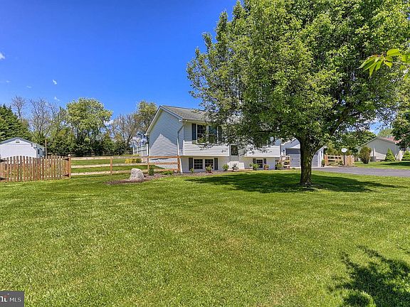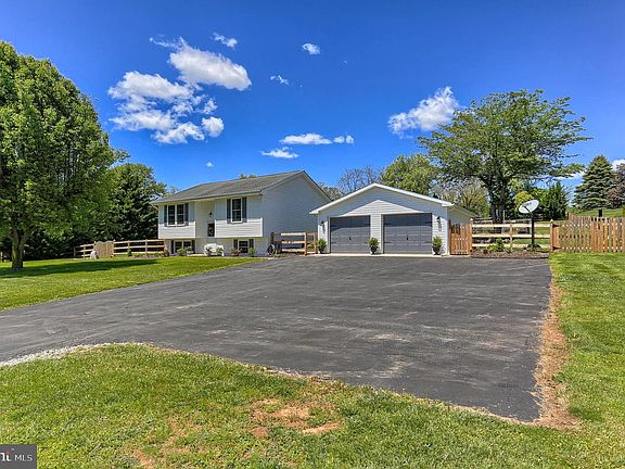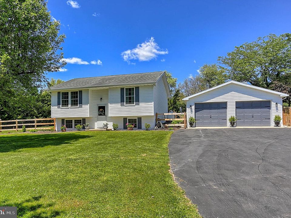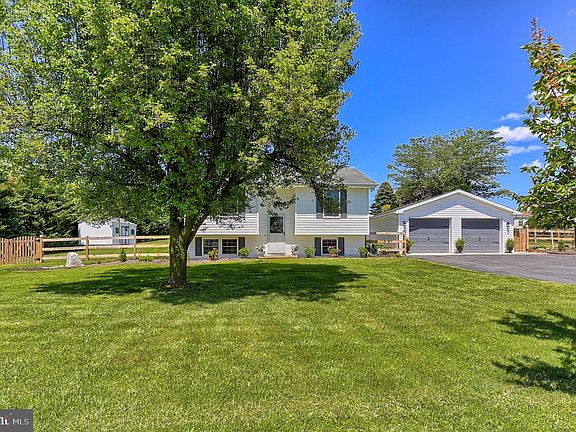 Charming 3 Bedroom 2 Full Bath Split Foyer located on private, beautifully manicured 1.16 Acres! Main Level Features: Hardwood flooring & crown molding throughout; custom oak country Kitchen leading to rear Patio; Living/Dining Room combo with wainscoting; Full Hall Bath boasting updated vanity, tile flooring, wainscoting & tub/shower and two spacious Bedrooms. Lower Level Features: Owner's Bedroom En suite with updated Full Bath; Family Room with Gas Fireplace & built-in shelving; Laundry and Brand New Carpeting throughout. Outside you will find an oversized, detached 2-car Garage; 12x20 Shed; Huge Patio for entertaining & adjacent gravel area for gathering around the built-in stone Firepit. Huge, fully fenced, tree-lined Backyard with additional fenced-in Pen. This Home has been Lovingly Maintained and Upgraded by it's current owners and is ready to welcome it's new owners HOME!