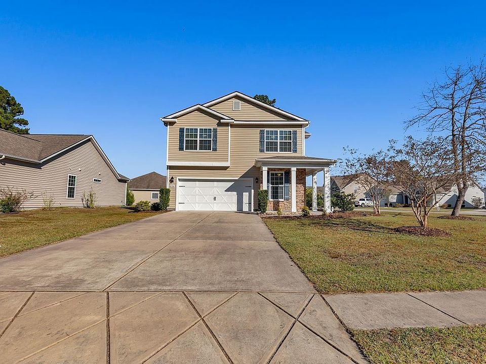 So much house at such a great price! This 2-story beauty built in just 2014 on a corner lot is move-in ready! With 4-bedrooms plus a study that could easily function as an additional bedroom, and 2.5 bathrooms, this home can fit the whole family without feeling cramped. On the first floor, in addition to the study, you'll find the kitchen, dining area, and living room that all flow together seamlessly in this open concept floor plan. The kitchen features ceramic tile flooring, granite countertops, matching black appliances, recessed lighting, a pantry and breakfast bar that overlooks the dining area and living room. The dining area and living room feature true hardwood floors and lots of natural light from windows all around, as well as the glass slider leading to the screened porch and patio area..perfect for grilling! Upstairs you'll find the master suite as well as three other guest bedrooms and a laundry room. The master bedroom has a vaulted ceiling and leads to the ensuite with ceramic tile flooring, a double sink vanity, separate water closet, soaking tub, walk-in shower and massive walk-in closet. With it's convenient location, low HOA dues, no flood insurance required, and no city taxes, you can't afford NOT to check this one out! Some photos in this listing have been virtually staged.