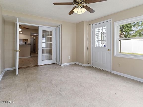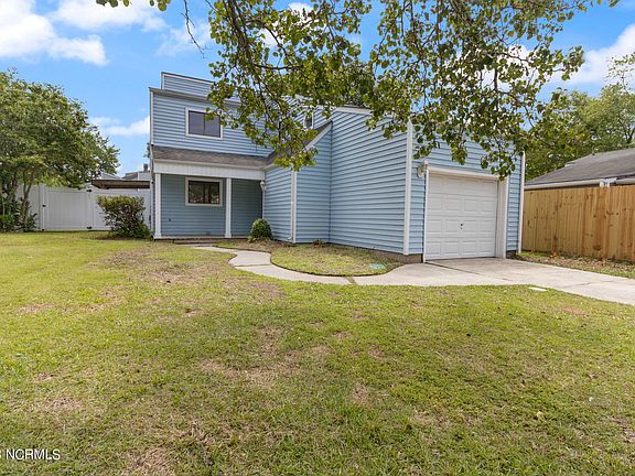 Welcome to 1502 Davis Street, Jacksonville, NC, where you'll find serenity and comfort! This thoughtfully updated two-story home boasts a lovely neighborhood setting, resting on a well-shaded lot. This move-in ready home offers any family a comfortable and inviting living space. You'll find a freshly painted interior with modern fixtures, lovely tile floors, a spacious office/den, a dining area, a half bath, and a laundry room. The kitchen is fully outfitted with appliances and plenty of counter space and cabinetry. Upstairs you'll find two guest bedrooms, a bonus room with skylights, and the master bedroom and en-suite and French doors opening to a private balcony. The second floor also has a separate full guest bathroom. Enjoy hosting family and friends on the covered front and back porches, or curl up with a good book in the bright, airy sunroom. With plenty of space to relax, entertain, and work, this home is a great opportunity you don't want to miss!