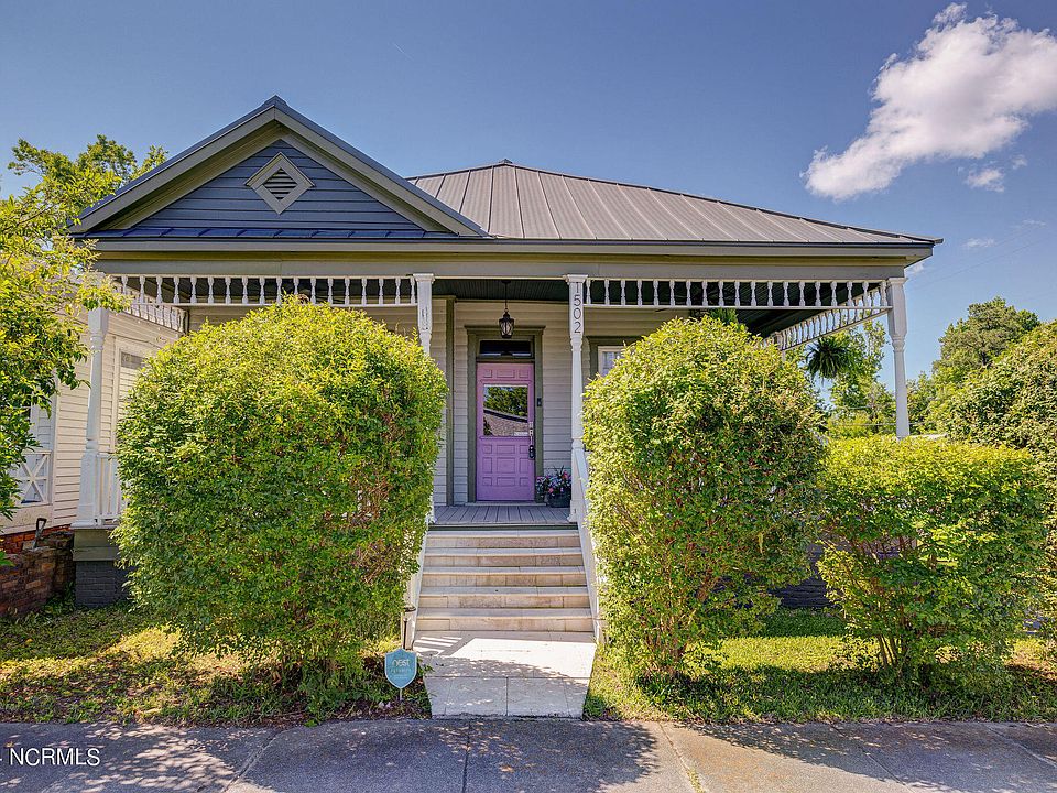 1502 Dock St! A beautiful fully furnished 3-bed, 2-bath home on the corner of 15th and Dock St. Offering historic character with a modern twist, perfect for both primary living and/or income potential. Currently a thriving short-term rental, this meticulously renovated property is a dream for owners and investors seeking a turnkey opportunity. Lovingly restored, step inside and be greeted by an open floor plan with vaulted ceiling and an abundance of natural light thanks to skylights. The 2018 renovation took this home down to the studs, ensuring everything is up-to-date and ready for years to come. But the charm of the past isn't lost - beautiful antique wood floors throughout weave warmth and character into every room. Whip up culinary delights in the stunning kitchen featuring granite countertops, a butcher block island, subway tile backsplash, and top-of-the-line stainless steel appliances with a gas cooktop.Unwind in the luxurious primary bathroom with double vanities, a spacious walk-in shower, and a soaking tub.Enjoy the Carolina sunshine swaying gently on the inviting rocking chair front porch, or relax in the privacy of the back deck, perfect for entertaining. Off-street parking and a shed provide additional convenience.Peace of mind comes with a metal roof and a recently replaced HVAC system with gas heat. This charmer is not only stylish but also practical.Centrally Located for Endless Exploration. This delightful property enjoys excellent walkability to the vibrant Cargo District with trendy shops, delicious restaurants, and local breweries. Explore the unique shops and restaurants of the Soda Pop District, or stroll along the historic downtown riverfront, all within easy reach. Plus, you're just a short drive to the area's famed beaches for sun and sand.Don't miss this opportunity to own a piece of Wilmington history and a proven income generator!