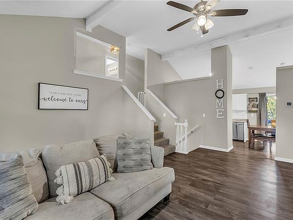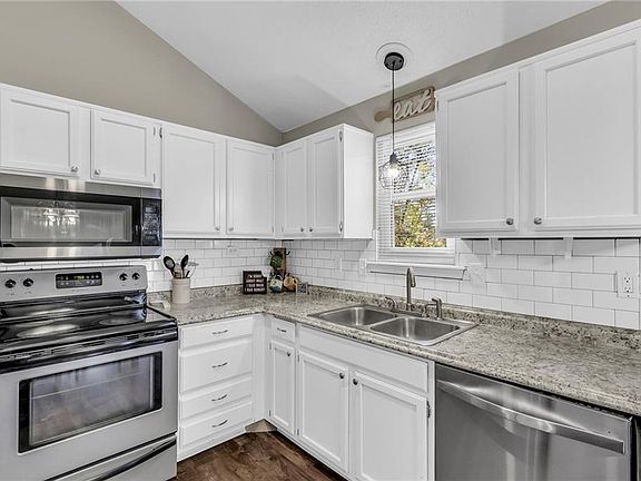 Great floor plan! Updated kitchen /all appliances stay. The sliding door in the kitchen, goes outside to a nice deck, to a large fenced yard. Living room with a wood burning fireplace.