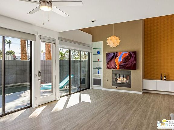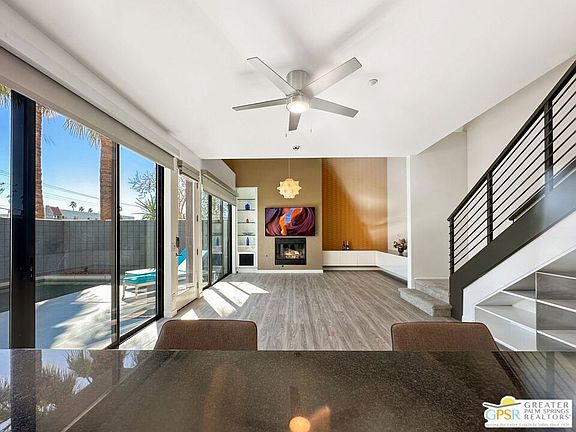 Welcome to 1502 East Baristo Road in the sunny oasis of Palm Springs! This contemporary home offers 2 bedrooms, 3.5 bathrooms, and a bonus loft that can be considered a third bedroom as listed on the tax roles. There is 1,737 square feet of luxurious living space. Upon entering, you'll be greeted by a well-thought-out floor plan, modern finishes, and an abundance of natural light that fills every corner, creating a welcoming ambiance throughout. The spacious living room features a cozy fireplace, adding warmth and charm to the space. Adjacent to the living room, the dining area and kitchen provide seamless connectivity, with the kitchen boasting modern appliances and ample storage and counter space, catering to the needs of any culinary enthusiast. The living areas are both spacious and comfortable, perfect for unwinding or entertaining guests. This home is ideally located in a gated community, offering security and tranquility. One of the highlights of this property is its unique feature as the only model in the community that offers a main floor primary suite providing convenience and accessibility. Recently remodeled in February 2024, the property boasts updates including wallpaper removal, interior painting, installation of brand-new luxury vinyl planks throughout the main floor, and a new stove and oven. Additionally, automatic shades have been installed throughout the first floor, and a 220 plug has been added in the garage for EV charging. Don't miss out on this incredible opportunity. Contact us today for more information and discover the luxury of 1502 East Baristo Road!