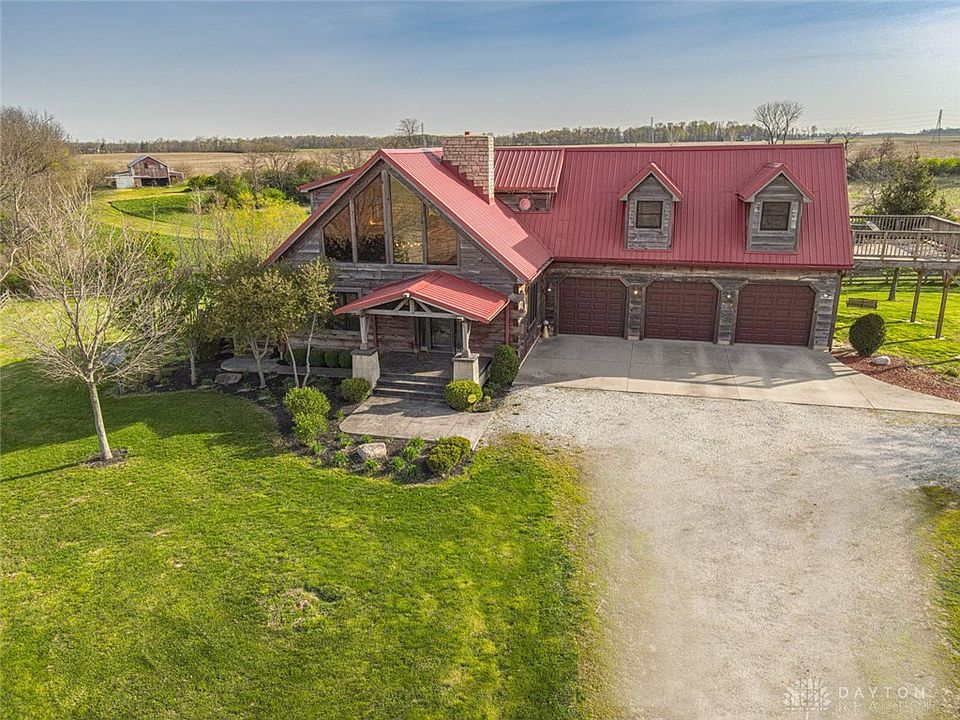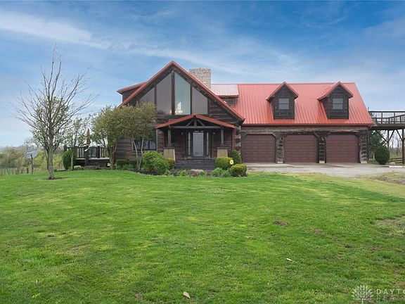 Spectacular Chalet perched on 10 acres in the countryside near Liberty Indiana! This Beautiful lot has it all: woods, ponds, yard and pastures. Thoughtout the home hickory floors impress! Partially open floor plan with 2 story Living Room and Dining Room which enjoy a wood burning stove with stone chimney. The Kitchen is chef's dream, with Propane 6 burner Wolf stove, Sub Zero fridge, 2 drink coolers and a built in coffee maker! All surrounded with hickory cabinets. The Family Room walks out to the wrap around deck with amazing views! Upstairs is a large loft area with a balcony. Off the Huge Master Suite is an office area. The Master Bedroom itself has a walk in closet, a bathroom with 2 vanities, large walk in tile shower and a jetted tub plus walks out to its own private deck. The Finished walk out basement has a 3rd Bedroom, a Rec Room with access to the covered patio. 2 More Rooms plus a full bath complete the home. Heated with efficient geothermal. The 3 car garage is finished and heated. Land Includes a barn plus two ponds! Come live your country dreams in this gorgeous home! Additional 10 acres available with this property for an additional $130,000.00