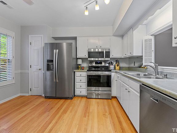 Gorgeous 3 BR 2.5BA townhome in convenient North Ridge Villas. Perfect for entertaining - KIT features SS appls & breakfast nook, & spacious Family/Dining Rm with hdwds, painted brick fireplace & double french doors that open to the large deck, fenced/private backyard. Spacious Primary Bedroom upstairs w/WIC & walk-in shower w/2 additional bedrooms/office, etc. Tennis and Pool included in HOA! HVAC 2020, Water heater 2020. Around the corner from North Ridge Shopping Center, easy access to 540, 440, & more