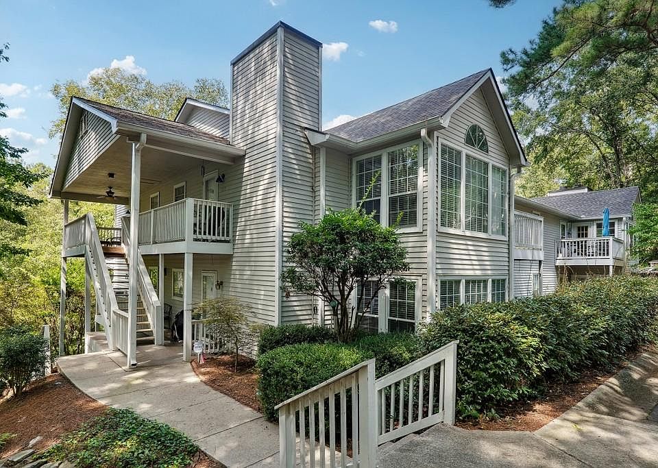 Looking for privacy? You've found it here! End unit home with lush views ready for your discerning buyer! Your favorite place in this home will be the window lined sunroom with forested views and a peep at the pond behind the building. Fireside living area with new LVP flooring and open to the dining area and kitchen with new farm sink, counters and backsplash. Owner's bedroom features a walk-in closet with plenty of storage. In the secondary you will have access to the new outdoor deck. Features in the bath include a new tub and tile surround, and hardware. Don't miss the laundry ROOM in this home. At the time the roof was replaced in 2022 the homeowners took the opportunity to also change the dryer vent. Parking is not assigned but the secluded location offers the fortunate homeowners in this part of the community plenty of extra parking. There are only a few steps to enter the unit from the parking but the back of the home is not on street level - great for views and safety. The reasonable HOA dues include pool access, water/sewer, trash removal, termite control, common area insurance, grounds and exterior maintenance. This unit offers privacy galore! Ideal Sandy Springs location! Close to shopping, parks, restaurants and many entertainment venues. Bring all offers! Separate storage unit comes with unit in Building 1100.