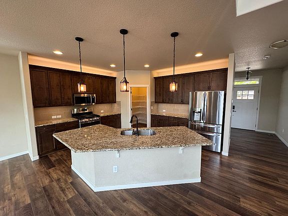 Large two-story house in the Gateway Park neighborhood featuring 4 bedrooms and 2-1/2 baths on a corner lot with a park/open space right across the street. 2700 sq feet finished with and 1200 sq feet unfinished in the basement. New luxury vinyl plank flooring throughout the home with two-story living room area with lots of windows that bring in a lot of natural light. Large master bedroom with huge 5-piece master bathroom and huge closet. Beautiful kitchen with center island, lots of storage space, and a huge walk in pantry. Oversized tandem 3 car garage. Walking distance to Berthoud recreation center and downtown Berthoud, and is very close to all 4 schools. Private backyard with raised beds for planting and a huge concrete patio perfect for entertaining with a gas fire pit. Residents are required to put all utilities in their name and will be responsible for lawn care and maintenance. Non-potable water is used to water the lawn so resident will not have to pay lawn irrigation during the summer months. Owner is responsible for power, water/sewer, and trash utilities. Yard upkeep and maintenance is responsibility of renter as well. No smoking inside the house. Pets will have to be screened by landlords prior to lease being signed. Renter must provide proof of renters insurance. All kitchen appliances will be left in home. Renter will need washer and dryer.