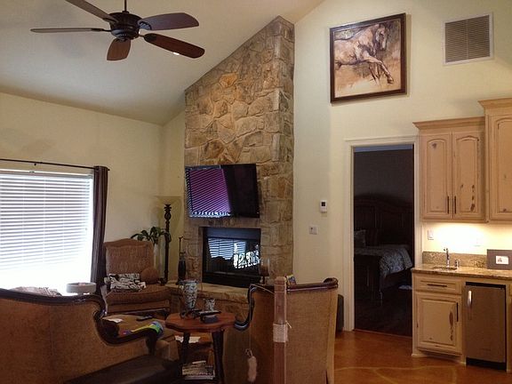 Beautiful custom home on 15 acres in Marion ISD. This property displays a rustic elegance with an open floor plan featuring granite countertops, distressed custom cabinets, stainless steel appliances, 10 foot ceilings, rock fireplace, mesquite hardwood flooring, 1000 sq foot wrap around porch and a walk in gun safe. The property also includes a one acre stock tank, arena, 4 stalls, 2 horse paddocks, workshop, carport, pavilion, and a gazebo. Additional property info: http://www.forsalebyowner.com/listing/3-bed-Single-Family-home-for-sale-by-owner-1502-Hardluck-Road-78124/24035945?provider_id=28079