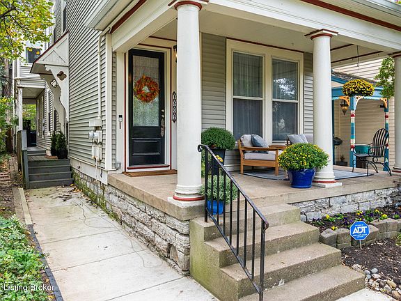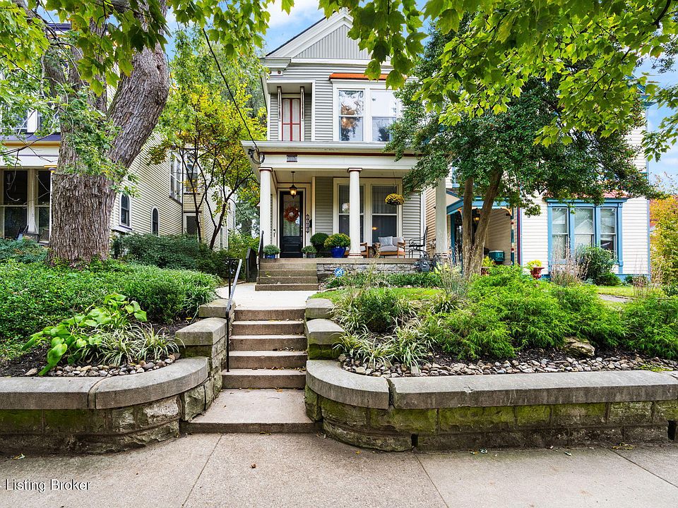 Located in the Heart of the Original Highlands, this beautifully updated and meticulously maintained four-bedroom, four-bathroom Victorian offers a perfect blend of historic charm and modern updates. What you may not see immediately, and what makes this home even more unique and special, is the 500-square foot carriage house that sits above the detached garage in the rear of the home; offering a hard-to-find completely separate living space/office space/workout room or whatever you want it to be (to build this today would cost a small FORTUNE!) Inside the main home, you'll find elegant 10.5' ceilings, stunning inlaid oak floors, updated designer lighting, loads of storage, and beautiful stained glass throughout. The inviting foyer leads to a formal living room with built-ins and a decorative fireplace. A spacious family room flows seamlessly into a light-filled dining area. The kitchen is a chef's dream with crisp white cabinetry, marble countertops, and GE Cafe appliances. The first floor also includes a stylish-tiled full bathroom. Upstairs, you will find three bedrooms: two sizable bedrooms, a full bath, and down the bright, closet-lined hallway, you make your way into the expansive primary suite that offers a peaceful retreat. In the primary you have a door to a private deck, an updated bathroom with two pedestal sinks and a large, tiled shower. Full-sized laundry is conveniently located in the oversized primary walk-in closet. Outdoors, enjoy the secluded backyard with mature trees, perennials, a natural stone patio, and full privacy fencing. The property features dual HVAC systems and dual water heaters, designed to maximize energy efficiency and ensure optimal utility management throughout the home. The current sellers have made considerable improvements to the home that include fresh paint on many walls and trim throughout the home as well as in the carriage house, three new exterior storm doors (2024), two new AC condensers (2022), a new mini-split system (2022) and water heater for both the carriage house the first floor (2024). The landscaping in both the front and backyards has been revamped and reimagined, with new concrete sidewalk in front and side, an improved stone patio in the rear, that is absolutely perfect for outdoor gatherings. The two-story deck is ideal for both relaxing and entertaining, while the front porch provides a warm and welcoming entrance perched above the street. The Carriage House is a standout feature, with a 1.5 car garage, separate studio apartment, full bathroom, and private deck, endless possibilities await! This is truly a one-of-a-kind property, schedule your showing today and experience this stunning home for yourself!