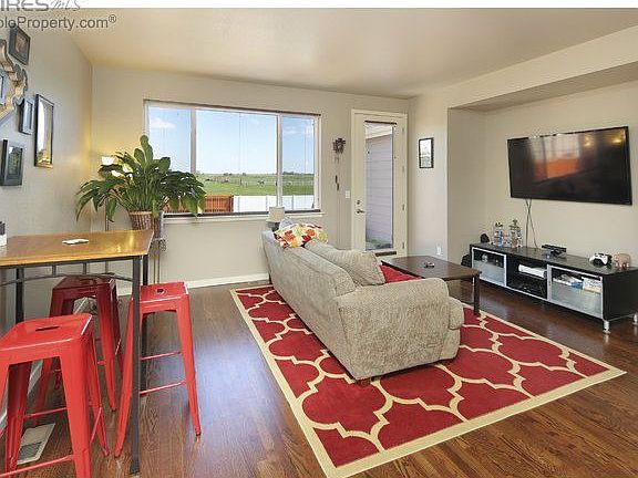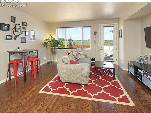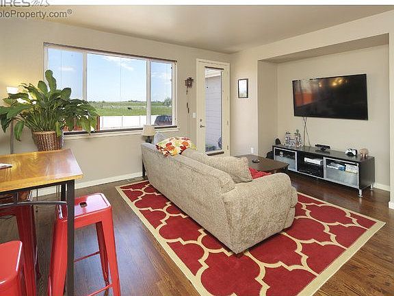 Beautiful contemporary home features granite counter tops, SS appliances, 42" cabinets, hardwood floors, tile, solid core doors, & High Efficiency HVAC including A/C. Unfinished basement w/ bathroom plumbing in place. Quick access to 2-acre park, trail & pond, as well as Berthoud Community Pool. Newly landscaped backyard looks out onto a huge grassy open area, same stunning view from master bedroom. Small town feel while still being close to Fort Collins, Loveland, Longmont, Boulder & Denver.