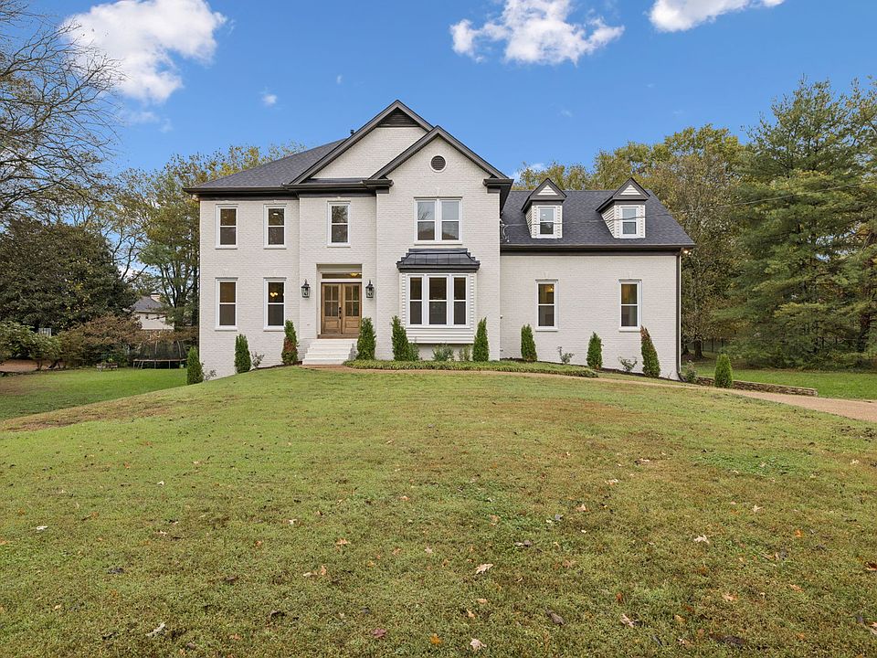 Welcome to this fully renovated brick beauty, perfectly nestled on a spacious 1-acre level lot shaded by mature trees in the highly desirable Brenthaven community. Set back from the street for added privacy, this home blends timeless charm with modern elegance and is zoned for Williamson County’s award-winning schools—Lipscomb Elementary, Brentwood Middle, and Brentwood High. Step inside to find a thoughtful floor plan enhanced by fresh interior and exterior paint, new hardwood flooring, upgraded lighting, and stunning design selections throughout. The foyer opens to a formal dining or sitting room, leading into a cozy living room with a gas fireplace that seamlessly connects to the breakfast nook and kitchen. The two-story breakfast room features a dry bar with a beverage center, while the chef’s kitchen impresses with a large island, abundant cabinetry, brass hardware, pot filler, and multiple dining options for easy entertaining. The main-level primary suite offers a relaxing retreat, while the second floor includes three spacious bedrooms, two full baths, and an open loft leading to a large bonus/media room complete with a dry bar and beverage center. The partially finished walkout basement adds even more versatility, featuring a large rec room with a fireplace, multiple flex spaces perfect for a home gym, playroom, or billiards room, a mudroom off the garage, and a convenient half bath. Enjoy outdoor living on the expansive deck overlooking the peaceful backyard, complete with a charming walking bridge over the creek that leads to the back section of the property. With a two-car garage, parking pad, and large driveway, there’s plenty of space for guests. Truly an impressive property in one of Brentwood’s most sought-after neighborhoods—where convenience, beauty, and function come together perfectly.